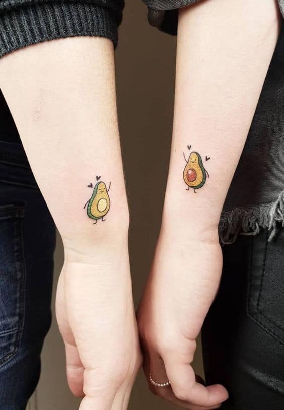 2. Cute Avocados with Hearts Tattoos