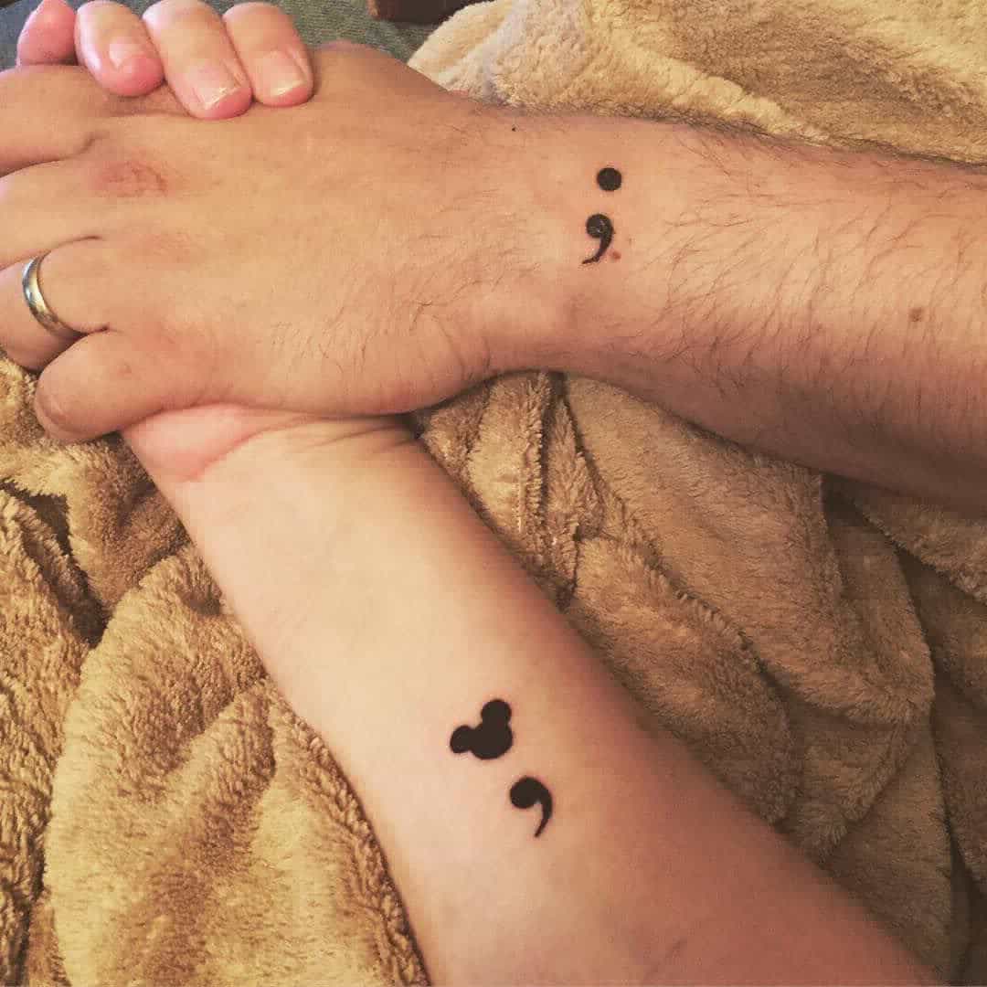 16. Semicolon Minimalist Matching Tattoos