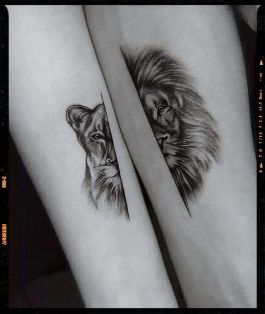2. Half lion and lioness tattoos