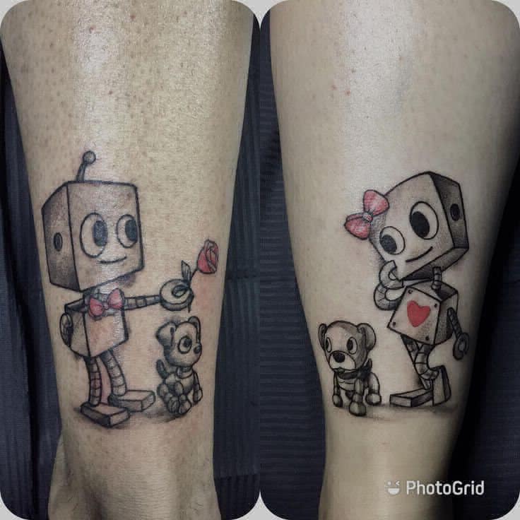 These delightful love-struck robots bring a fun and romantic flair to couple tattoos. If you’re looking for a cute matching design, this option is definitely worth considering.